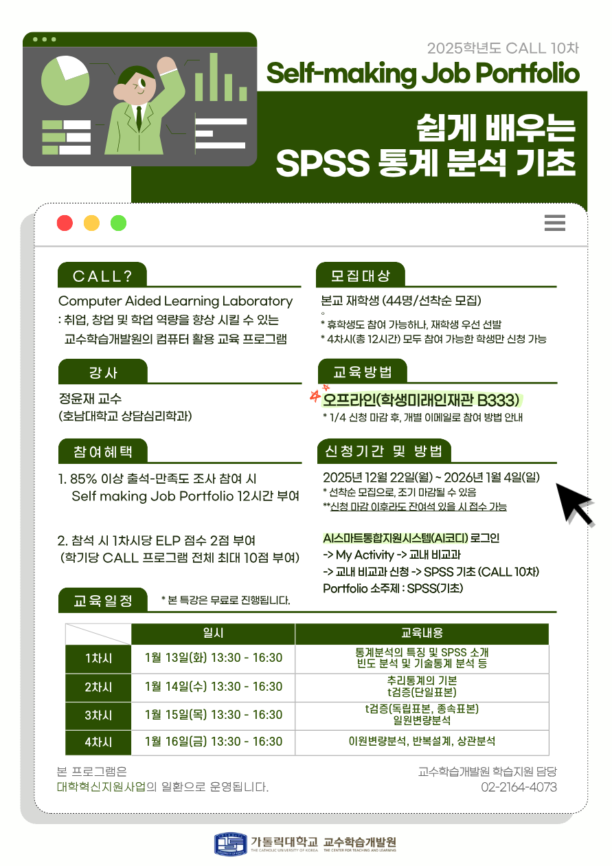 [교수학습개발원] CALL 10차 - “쉽게 배우는 SPSS 통계 분석 기초" 참가자 모집