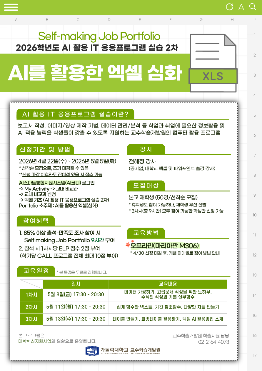 [교수학습개발원] AI 활용 IT 응용프로그램 실습 2차 - “AI를 활용한 엑셀 심화" 참가자 모집